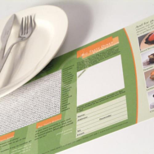Turn tables into marketing space: Every placemat can be customised with their menu, QR codes, or a simple branded message.
