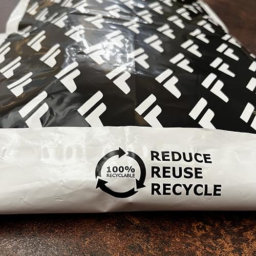 Our mailing bags are made of strong polythene, are water and tear resistant, and can be recycled by the end recipient, so they don't need to end up in landfill. Can be personalised in up to 3 spot colours, with or without integrated handles.