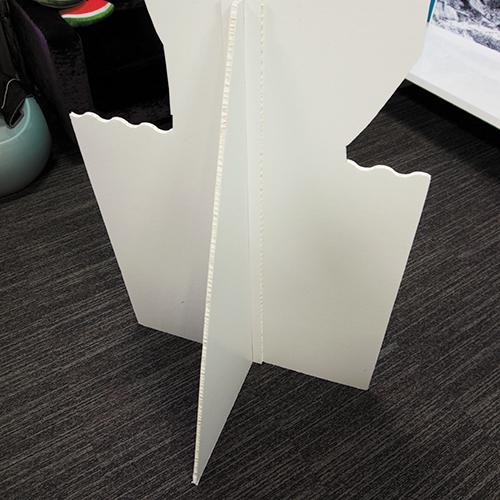 Choose between 5mm foamboard or 10mm reboard. Cut outs are supplied with easy to fit fins to the rear of the display for stability.